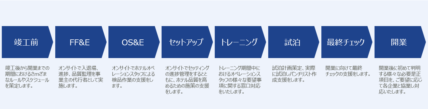 FF&Eの搬入からオペレーショントレーニング、試泊、開業に至るまで、